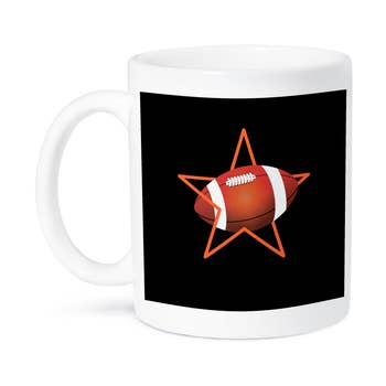 SKU: m-blkgldfw Made in United States Care Instructions: Dishwasher Safe and Microwave Safe Color: Black and Gold Material: Ceramic Occasion Theme: Everyday Season: Fall and Year-Round Theme: Sports Tone: Cute