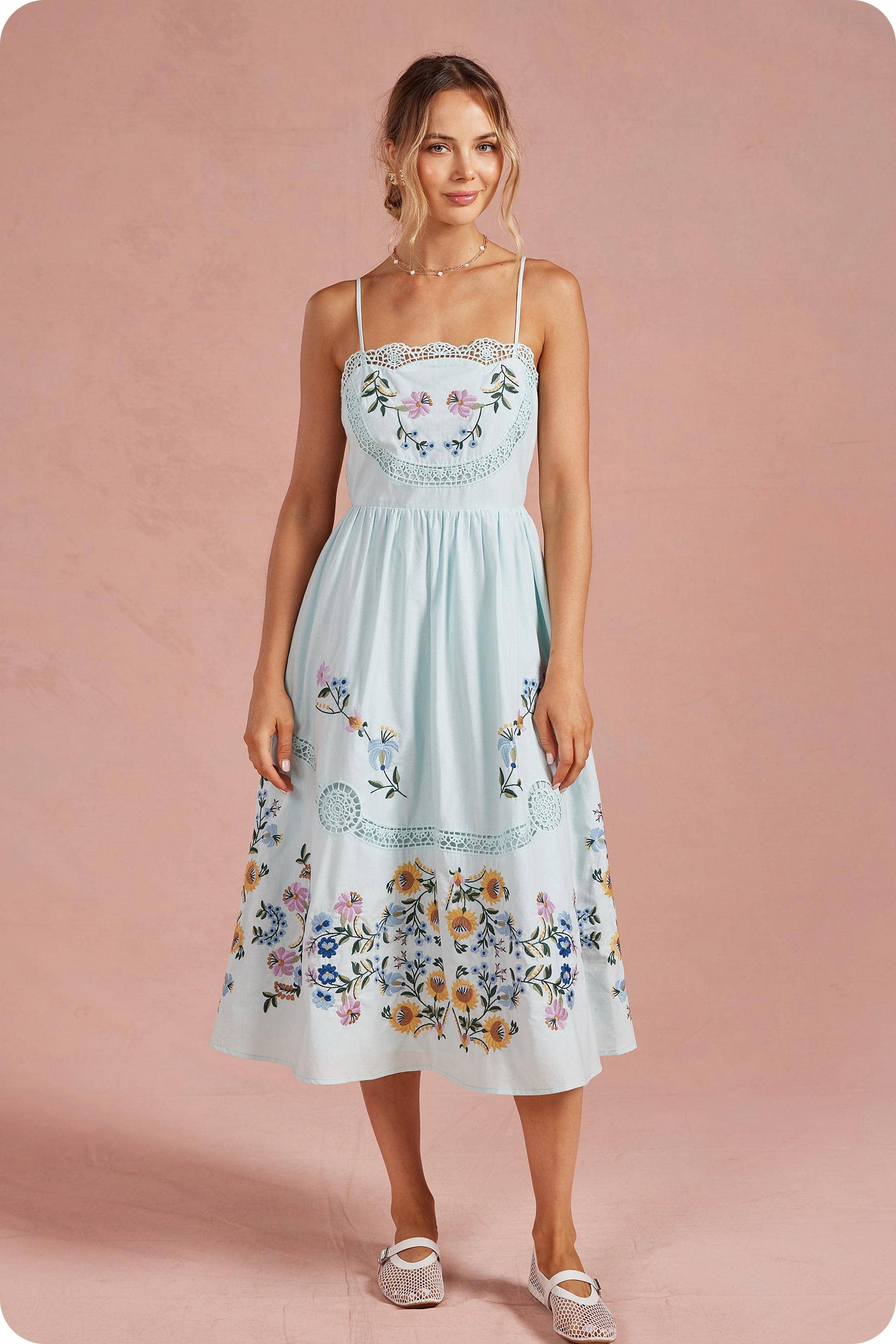 SKU: KD1281B, KD1281B, KD1281B Made in China Aesthetic: Casual and Classic Embellishment: Ribbon Fabric: 100% RAYON Fit: Contemporary Neckline: Square neck Pattern: Floral Season: Spring/Summer Skirt & Dress Length: Midi Sleeve Length: Sleeveless