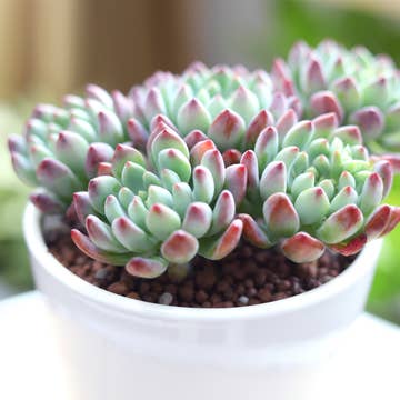 Echeveria Blue Elf is a hybrid between Sedum and Echeveria, which gives it the rosette look of Echeveria and the ability to grow multiple offsets of Sedum. Sedeveria Blue Elf has teal green leaves with amazing red tips that darken in winter. An outstanding bloomer, Sedeveria Blue Elf produces clusters of bright yellow flowers multiple times a year, which give it its nickname "Happy Plant". - Full Sun. - Porous Soil. - Avoid letting water sit for too long in the rosette to prevent rot and fungal diseases. - Dead leaves should be removed from the plant as soon as possible to ward off pests.