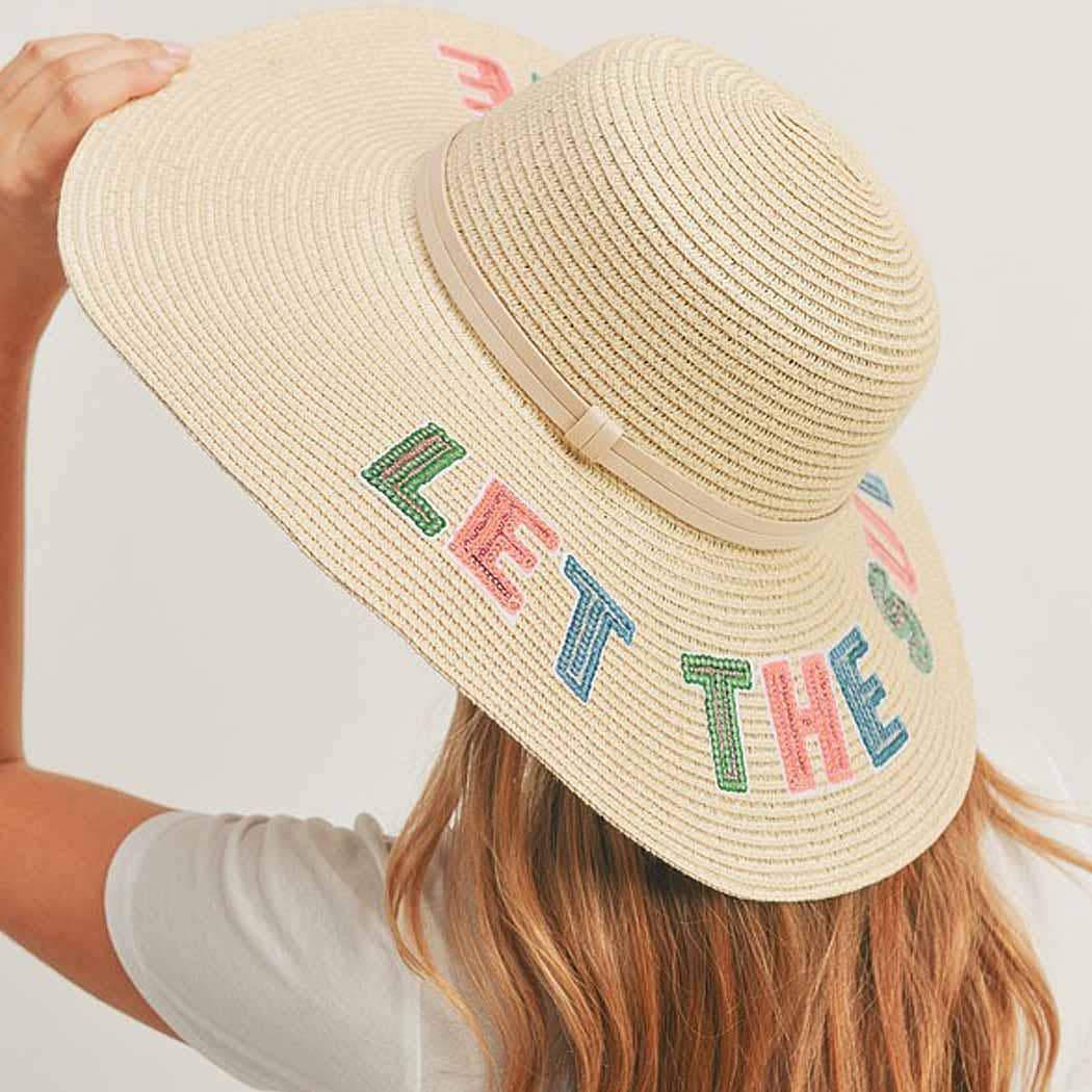 Wholesale Nauti Sequin Message Straw Panama Sun Hat