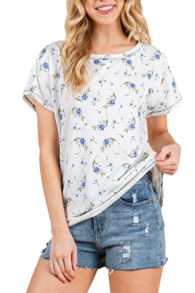 WHITE BLUE MULTI PLUS LACE STRETCH FLORAL MARROW EDGE KNIT TOP for wholesale on Faire6