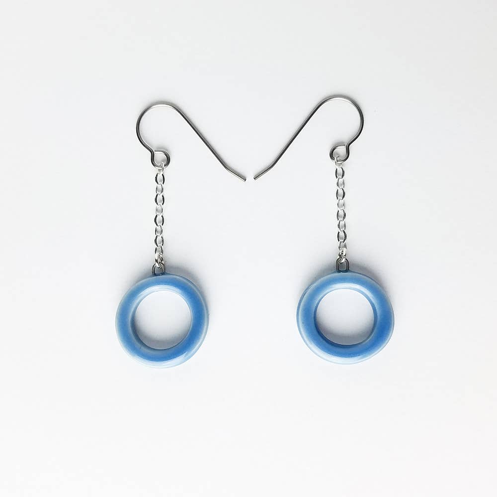 Donut or hoop-shaped tagua "dangle" on a gunmetal lever back ear hook. One of my most popular earrings! Earrings are shipped with an earring card as shown in one of the photos, along with a tagua information card. Please note sizes do vary due to the natural, organic material of the product. You can see from the photos some are more round, some are more oblong. However, I do my best to make sure the pair match each other in size as much as possible. In addition, colors can vary slightly per dyelot batch. There is usually a longer lead time for this particular hoop earring style when out of stock compared to E2th, which is a similar hoop earring but is much thinner. If you don't see the color you would like, check the other other listing for E2th.