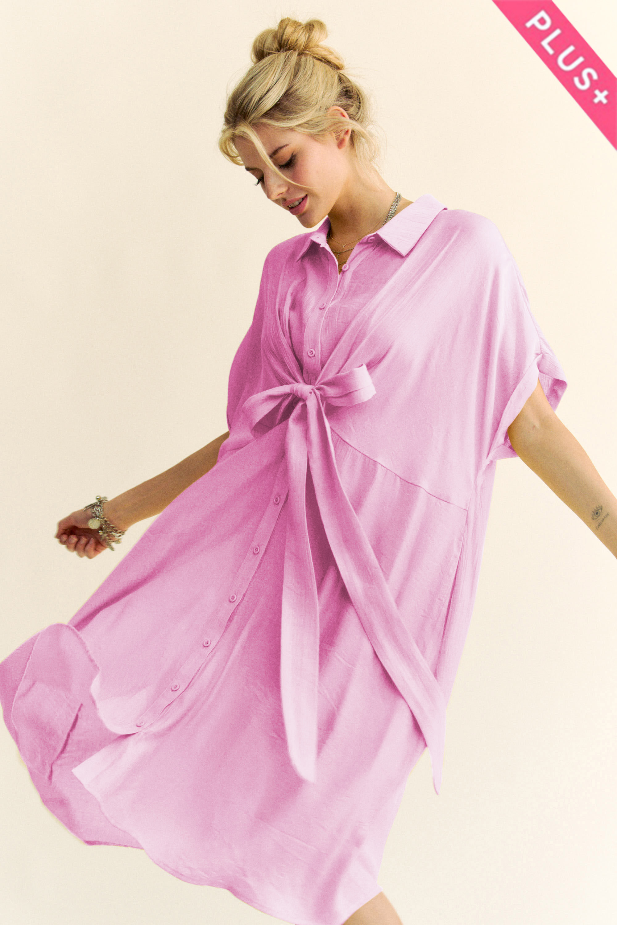PLUS SIZE BELL SLEEVE DENIM CHAMBRAY DRESS