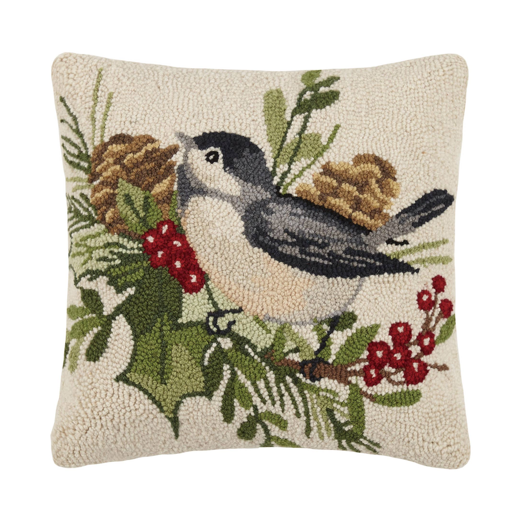 ★Hooked Throw Pillow ★Skillfully handcrafted with 100% wool and backed with luxurious 100% velveteen backing ★16x16 inches ★100% Polyester insert included with hidden zipper closure. Filler is slightly oversized to ensure a fuller look ★Designed by Sally Eckman Roberts ★Christmas winter holiday gift & home decoration ★A festive way to spruce up your home for the holidays or would make a wonderful Christmas gift