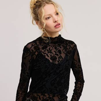 SKU: MT8913250T_TWNPT, MT8913250T_TWNPT, MT8913250T_TWNPT, MT8913250T_TWNPT Made in China Aesthetic: Bohemian and Romantic / whimsical Embellishment: Lace Fit: Contemporary and Junior Neckline: Turtleneck Occasion Theme: Halloween, New Year, and Valentine's Day Occasion: Cocktail and Night Out Season: Fall/Winter Sleeve Length: Long Sleeve Fabric: NYLON LACE 92% NYLON 8% SPANDEX