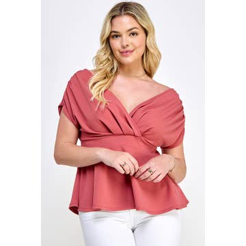 PLUS SIZE CHIFFON OFF THE SHOULDER SURPLICE TOP
