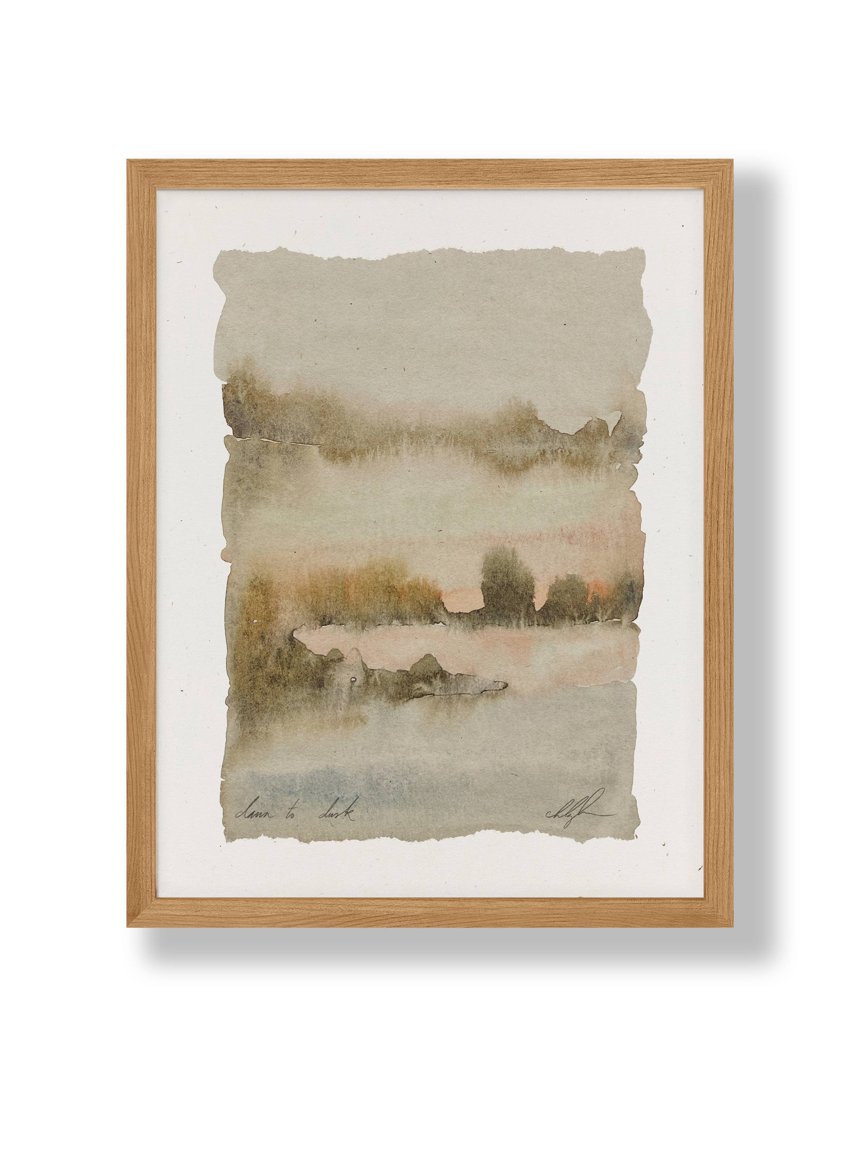 8x10 print on medium weight linen paper with added metallic gold accents. Packaged in a plastic sleeve with a cardboard backer.