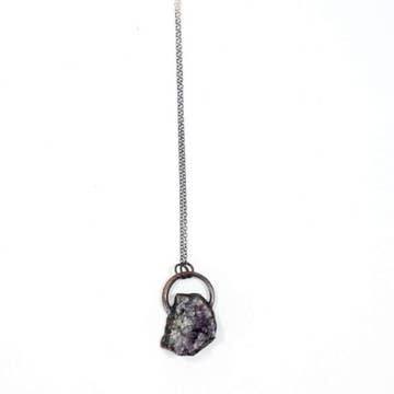 A beautiful chunk of raw other-worldly Campo del Cielo meteorite set in a thick silver bezel pendant necklace and hangs on a delicate matching silver-tone chain. A unique outer space necklace - a great gift for the scientist or stargazer in your life! Please note - this is a genuine authentic meteorite. Each stone is different and will vary in shape and style. Pendant size: 0.5" x 0.6" (12mm x 16mm) Chain length: 18" (46cm) Materials: Plated brass, raw meteorite Our jewelry is individually handcrafted and may slightly vary from the photographs. Our products are not waterproof - please avoid getting our pieces wet. All products will come with this care information. Makes a great gift or stocking stuffer!