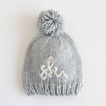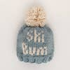What a cute way to hit the ski slopes! This beanie is hand knit in cozy Surf blue hued yarn with the words 'Ski Bum' in Natural colored yarn. Topped with a Natural yarn pom pom, this looks great with everything and is a fun gender neutral baby gift. Match it with our coordinating Ski Bum Sweater for the cutest look ever! Our hats are partially knit from recycled, sustainable Polyester yarn made from plastic bottles. We are on a mission to help reduce the world's plastic pollution problem ♻ • Hand Knit in China • 60% Acrylic, 40% Recycled Polyester • Hand Wash