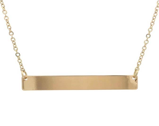 A solid brass bar so minimal yet edge is engraved with "Let go" on the bar. This thinner bar is 30mm long and 5mm wide. Slide through 14kt gold-filled chain. Select 16 inches or 18 inches chain.