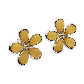 Floral design earrings. Solid Copper. Black Flower Handmade Stud Earrings ST-06 Handmade earrings diamond shape studs are individually handcrafted, silver plated and diamond cut with flower jewelry daisy design on black background. You will love our reasonable prices, our great customer service and high quality.