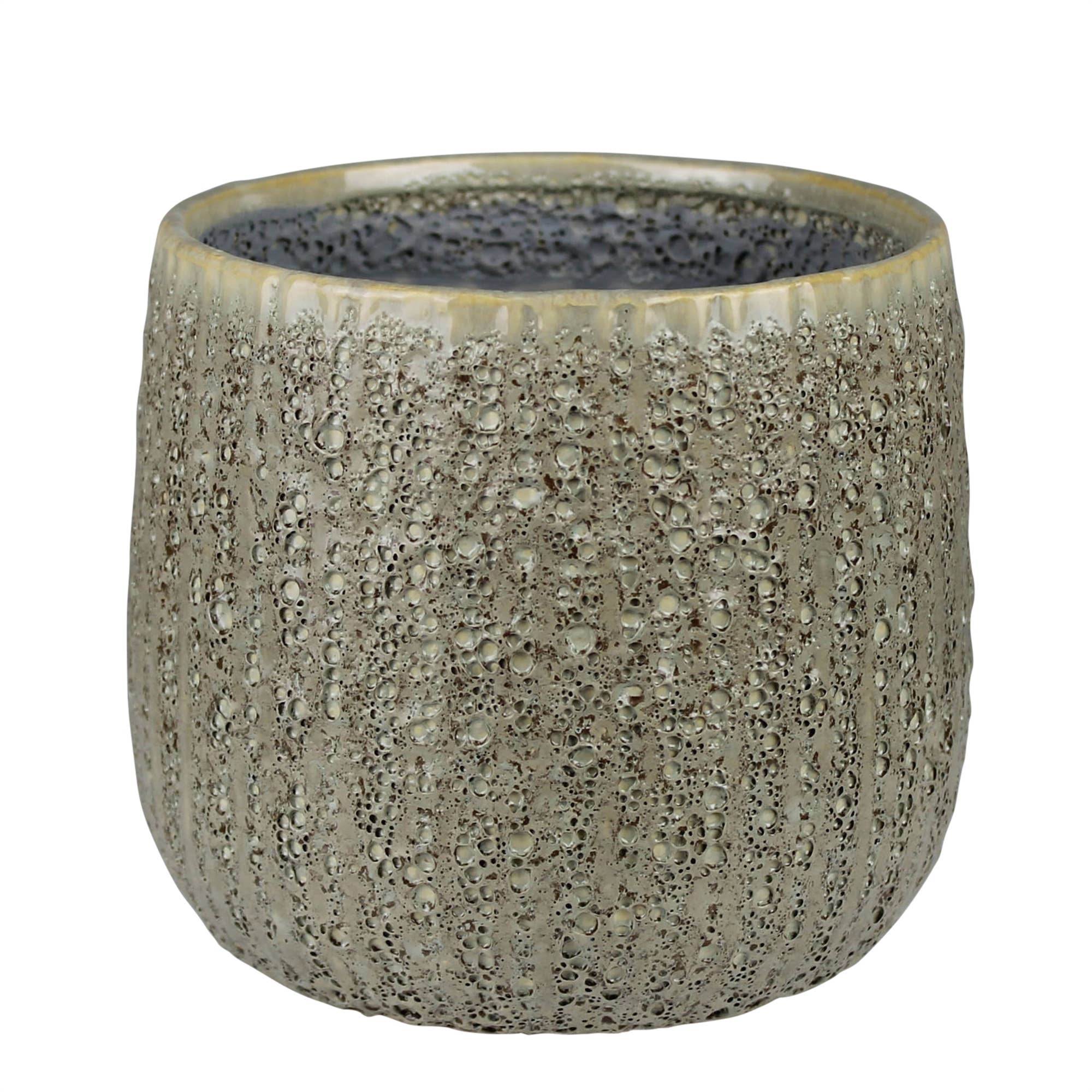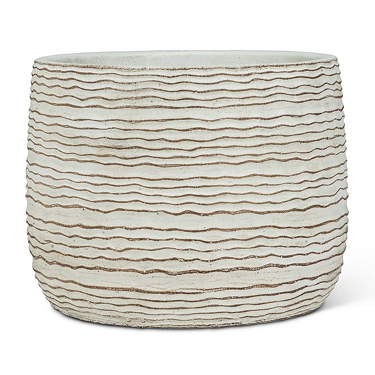 Wholesale A11032: Textd linen ptrn ceram pot cvr,off wht beige,5.5x5in