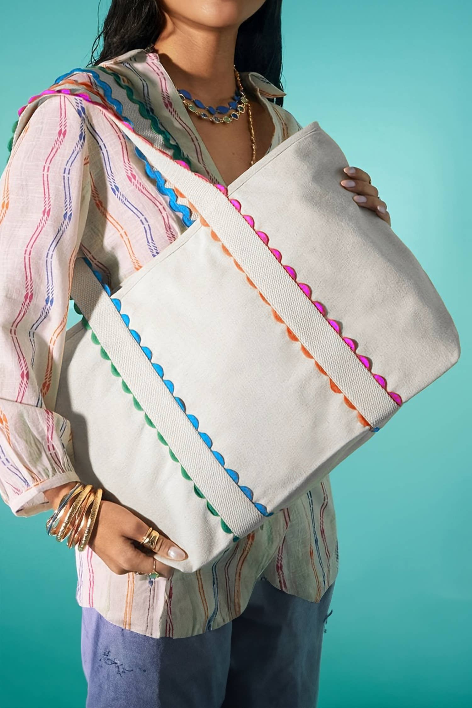 Bring structure and simplicity to your store with Canvas Ruffle Tote, an unbranded canvas tote bag that literally goes with every outfit. This is a handcrafted unbranded canvas tote bag created to deliver reliable daily carry with a clean, retail-ready look. Designed for errands, work, school, and casual outings, it is a practical carry-on option that balances durability with lightweight comfort. Perfect as an everyday tote bag for women, students, commuters, and gift buyers who value reusable canvas tote bags that transition easily from weekday use to weekend outings. Key Features: * Handcrafted unbranded canvas tote * Ruffle detailing for subtle design interest * Spacious interior for daily essentials * Lightweight yet dependable construction * Easy to merchandise across categories * Designed for repeat everyday use Construction & Materials: * Made In: India * Materials Used: Recycled Canvas Cotton * Structure: Soft body with reinforced stitching * Carry Style: Shoulder tote Style Guide: * Colors: Neutral canvas tones * Style: Minimal, casual, everyday functional * Theme: Practical organization with understated detail * Occasion: Mother’s Day, Christmas, Valentine’s Day, Graduation, Teacher Appreciation Gifts * Seasonality: Year-round staple with strong gifting potential Eco-friendly Information: * Handcrafted by skilled Indian artisans * Supports culturally rooted craftsmanship * Designed as a reusable alternative to disposable bags Retailer Information: * Why We Made This: To give retailers a dependable canvas tote bag that fits seamlessly into multiple product categories and price points. * Why You'll Love This: Easy upsell alongside smaller accessories, strong impulse gift appeal, and broad demographic reach across tote bags for women and everyday shoppers. * Pairs Well With: Canvas tote bags, zipper pouches, cosmetic cases, travel organizers, and everyday accessories. * Suitable for Retailers Such As: Gift boutiques, bookstores, lifestyle retailers, museum shops, campus stores, and fashion boutiques seeking versatile tote bags. House of Kraft is a brand born from a passion for meaningful craftsmanship and culturally rooted design. It creates heritage-inspired leather goods handcrafted by skilled Indian artisans, offering retailers authentic, story-rich pieces that stand apart. Elevate your shelves with House of Kraft's Canvas Ruffle Tote—crafted to inspire comfort, identity, and lasting value. People Also Search: Tote Bags, Tote Bag Purse, Tote, The Tote Bag, Tote Bags For Women, Canvas Tote Bags Seasonal Searches: Mother’s Day, Christmas, Valentine's Day, Easter Basket Stuffers, Stocking Stuffers, Graduation, Teacher Appreciation Gifts