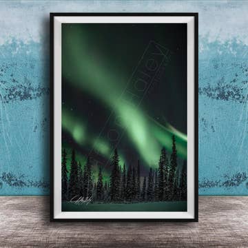 The northern lights dance across the night sky of the arctic, bringing warmth to the beluga whale during the long winter months. This Beluga Whale is more than just a marine mammal to the artist, Karen Whitworth. They are a comforting sight as these large, magnificent creatures of the northern hemisphere are a sign of home. Wholesale Art Print Features: * Vibrant color * Made in the USA * Custom white label upgrade available. Contact us for more info.