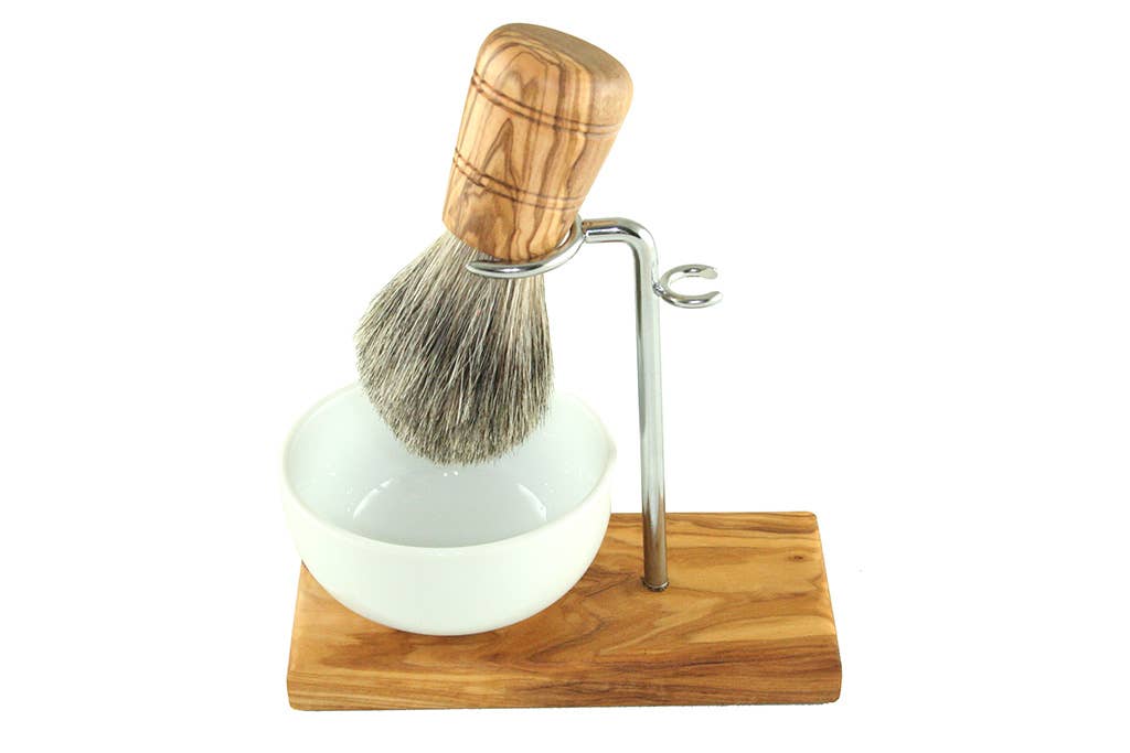 Wholesale CLASSIC PLUS shaving brush set, 3 pieces, made of olive wood with badger
