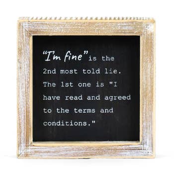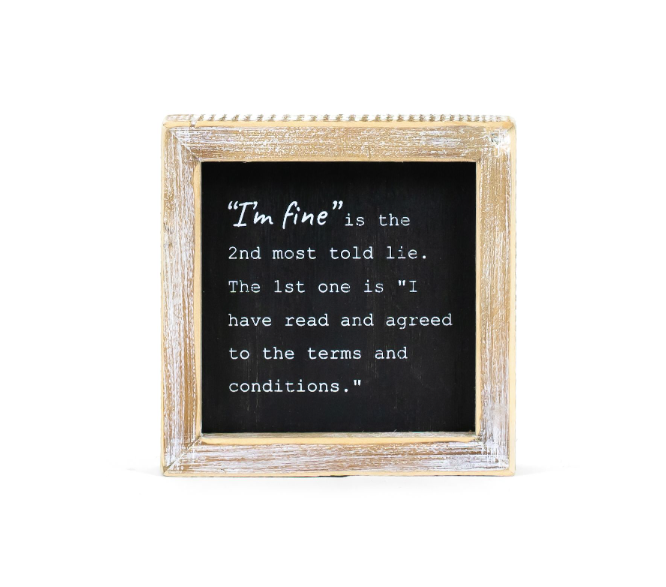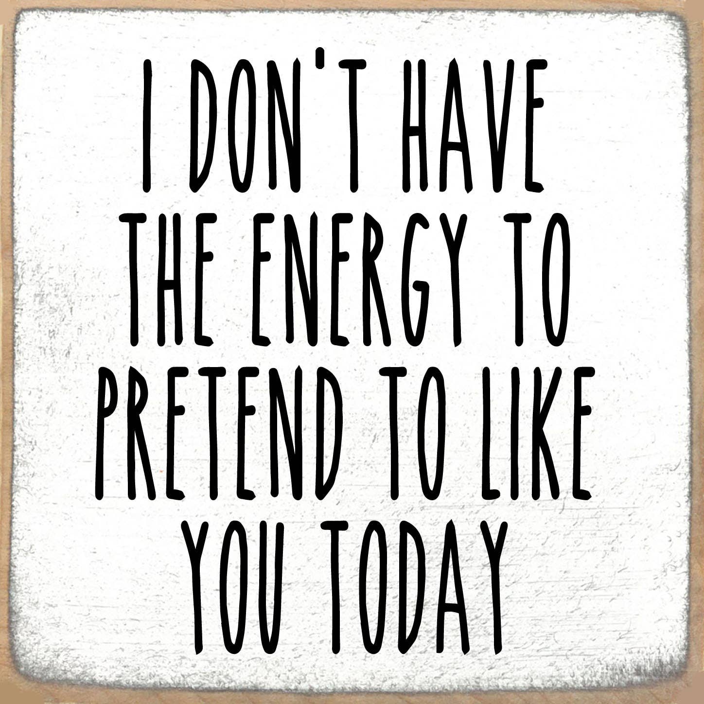 Hand-made sign featuring an engraved design on painted wood. Measures approximately 3.5" x 3.5" Funny sign perfect for your home decor store, gift shop or boutique! Please note: ALL of our products are hand-made and therefore there will be slight variances in color, texture and finishes.