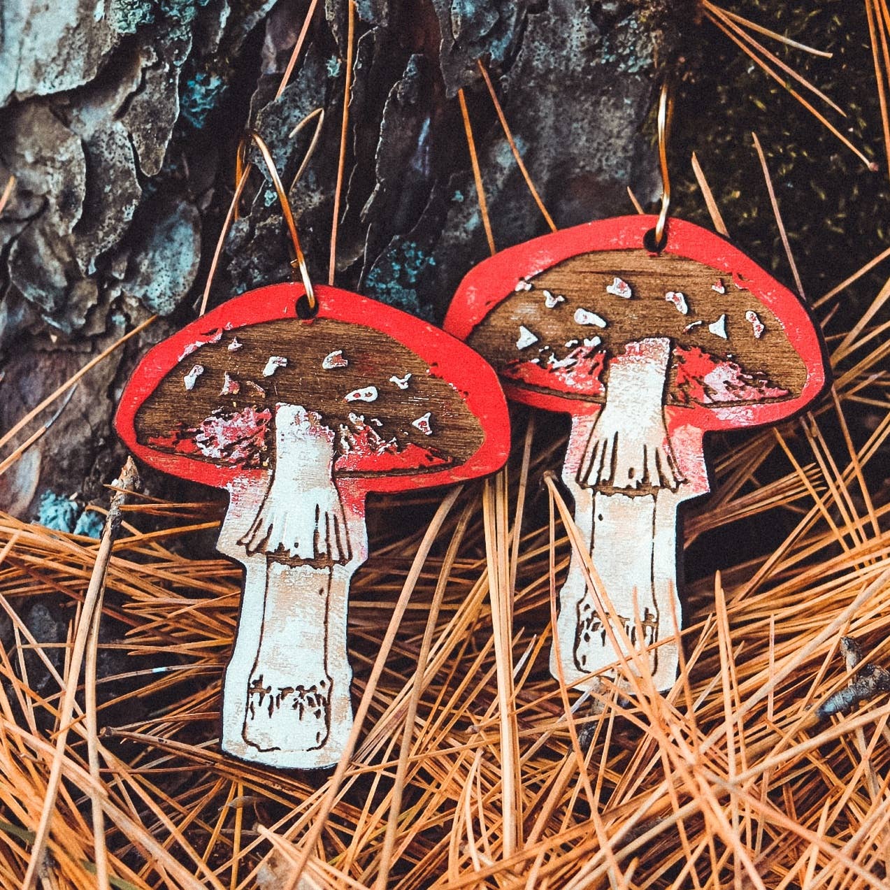 Simple & sweet wood earrings with real turquoise dangle bead. Nickel free brass hooks. Complete with branded card in cream or black. Hole in card to use as hanging options as well.