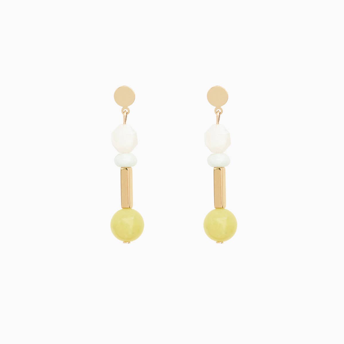 Séverine fell for the beauty of semi-precious stones and the subtlety of their colours : this is how the Wolcott range was born! - Hoop earrings in gilt brass (24K gold) Hoop diameter: 1,4 cm Bead diameter: 1 cm Bead material: quartz As semi-precious stones are natural materials, their color and opacity may vary. Made in Paris - deliverd in a grey box Wonderful Christmas gift idea!