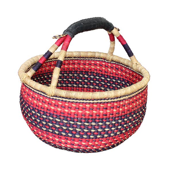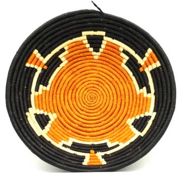 Oburo Ugandan Fair Trade Basket Medium - 13" x 4" depth Features: Natural millet center with rich red, blue, & gold colors "Oburo" means "Millet" in Rutooro Made by: Crazy Love Africa Sister Artisans