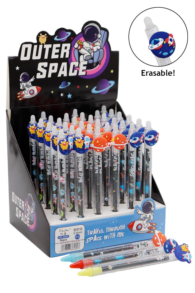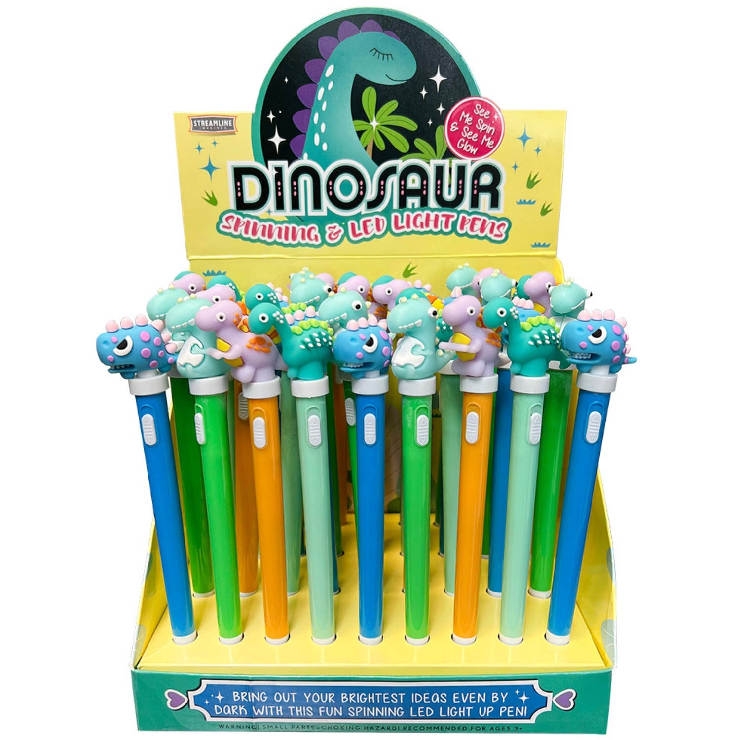 These Snackin’ pens are sure to make your mouth water! 4 different designs each topped with a fun laser cut character: pizza (Stay Cheesy), hot dog (Whatz Up Dog?!), ice cream cone (You Make Me Melt), and popsicle (You’re the Bomb!). 6 colors/scents in one pen: purple (grape), pink (strawberry), red (cherry), green (watermelon), blue (blueberry), and black (cola). Warning - Choking Hazard - Small Parts. 7" Long Quantity: 12 per display UPC: 603250722274