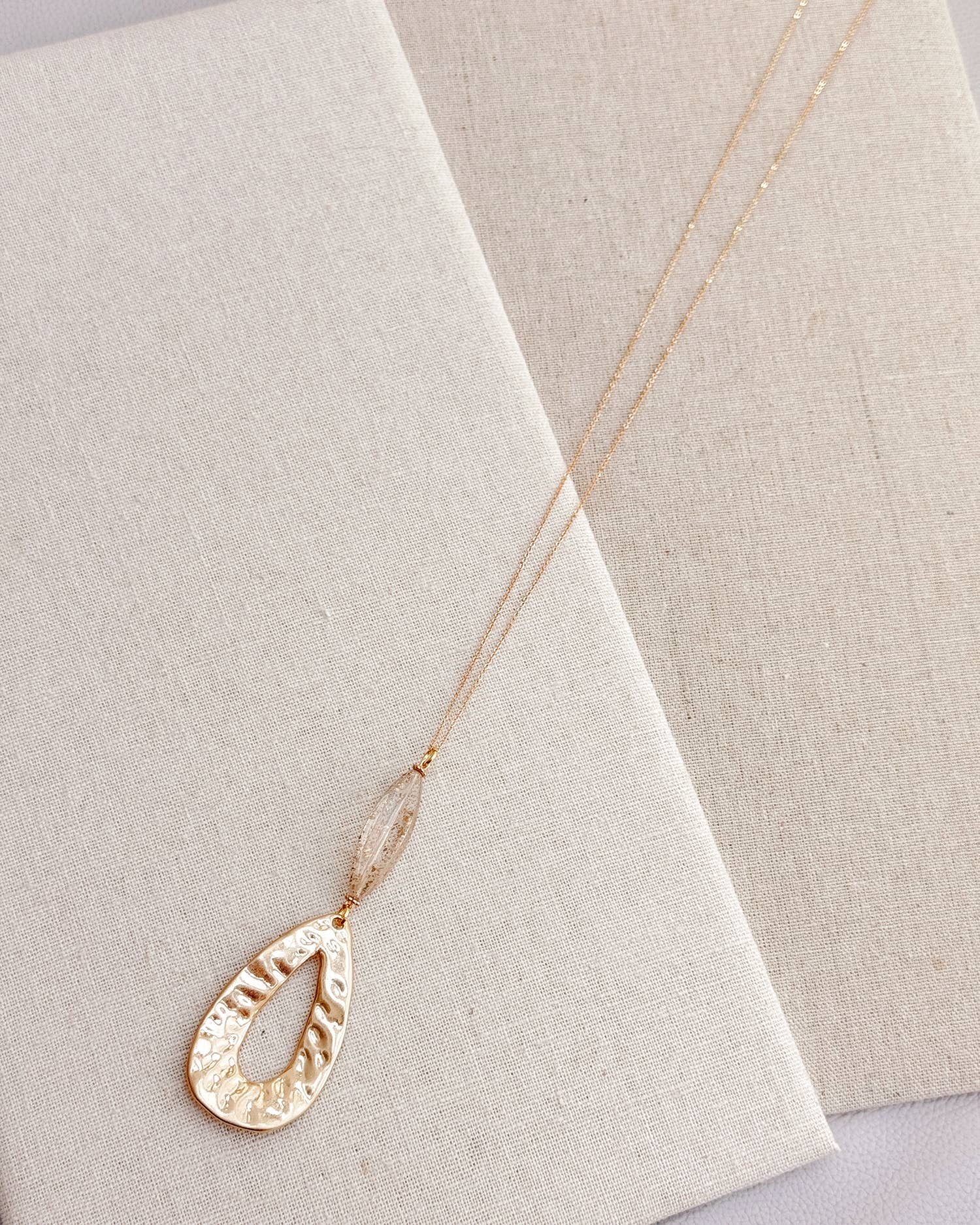 > Gold, plated chain and findings > Lobster clasp closure > 30"L + 3" extension // Pendant: 3"L > Made in Vancouver, Canada > AAA Grade Freshwater Pearl, Hypersthene > Long layering necklace > Minimalist design