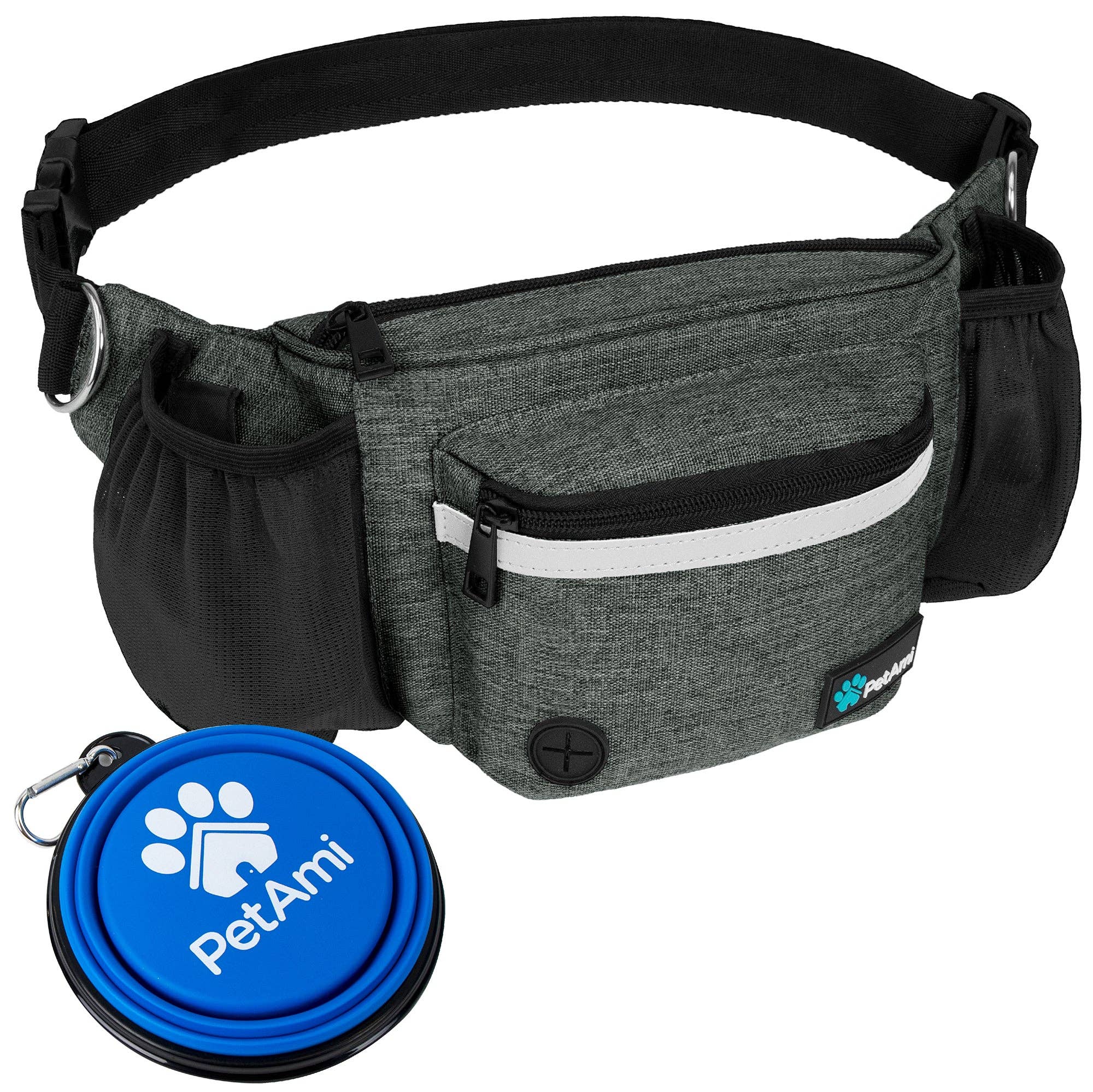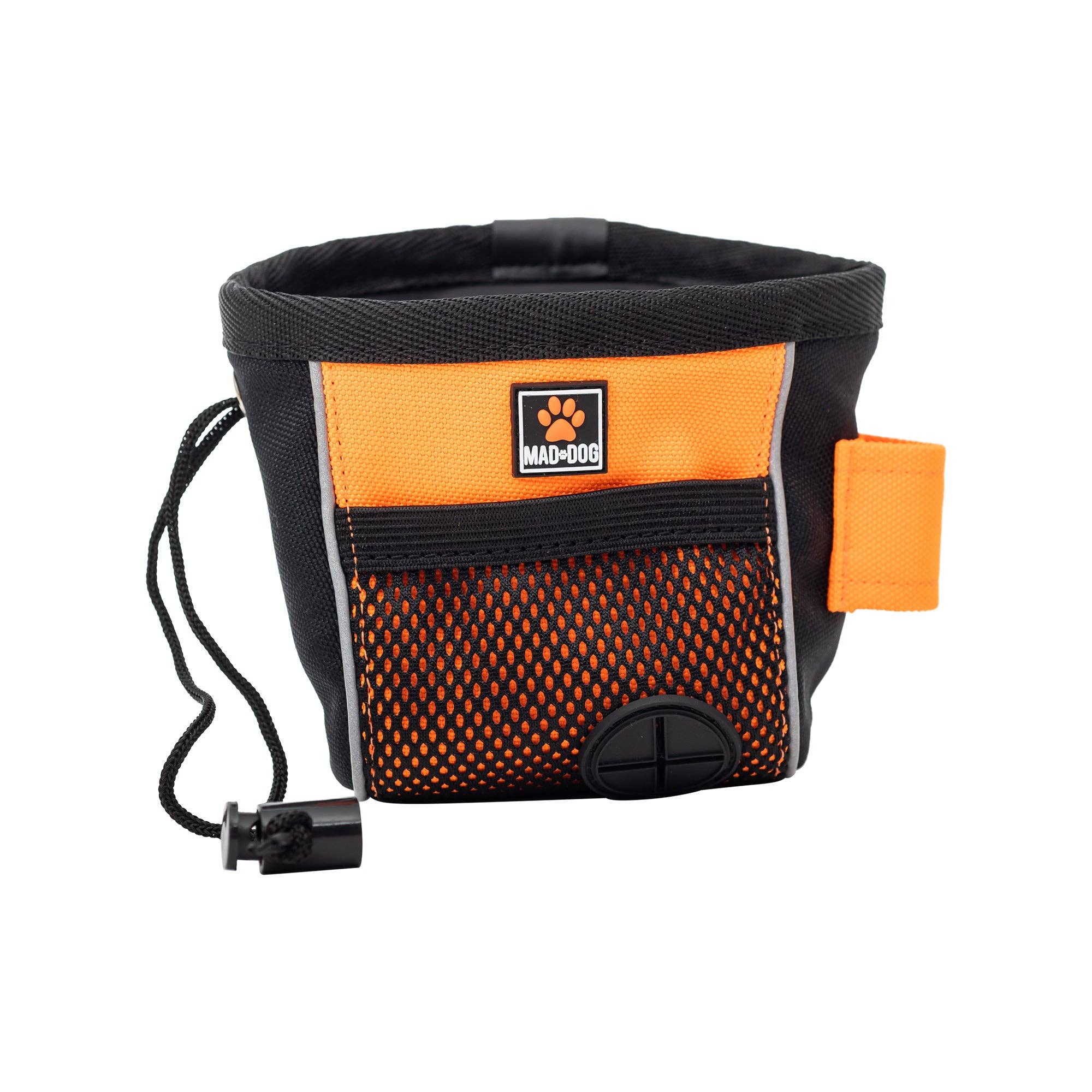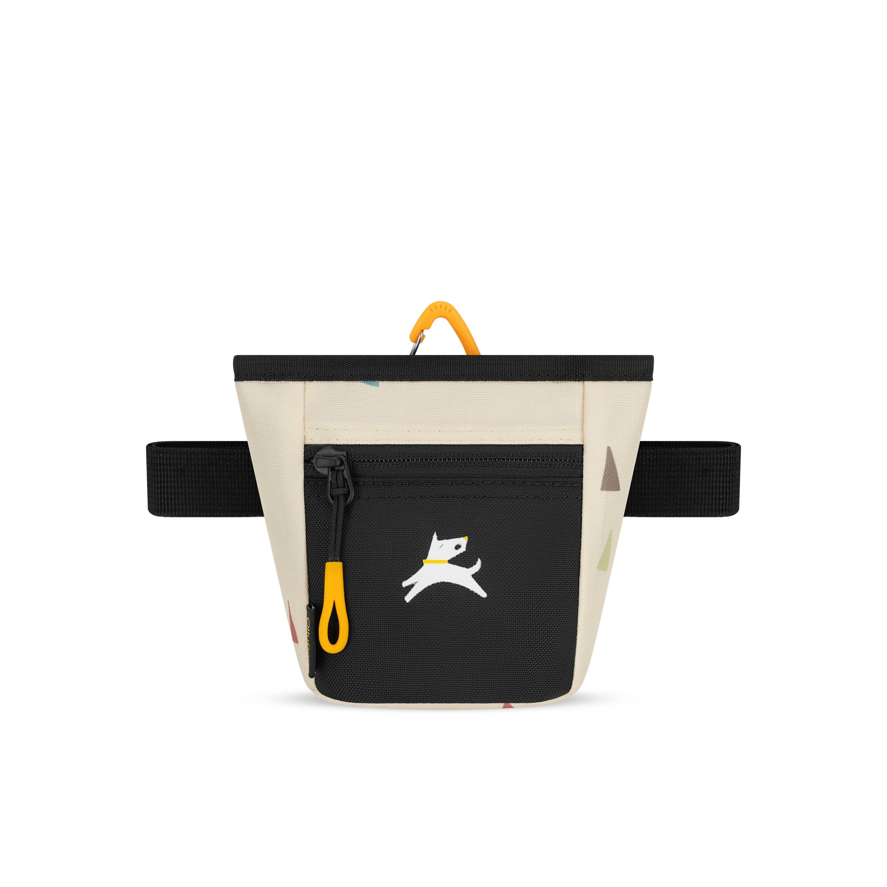 Conveniently clips for treats on the go. - Clips onto webbing loop on Handsfree Dog Walking Belt. - Easy to open while on the go. - Water-resistant material. - Easy clean lining, FDA approved.