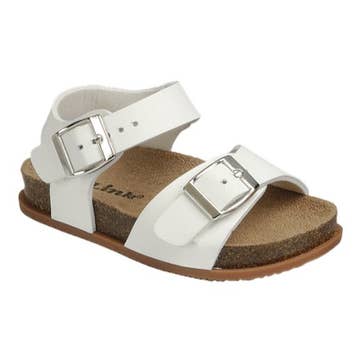 Add a little golden glow to her steps with our Riley Gold Sandal. Crafted in shimmering gold leather, this open-toe style is designed for warm-weather adventures and special occasions alike. The protective cap toe helps keep them looking polished through every playdate and party, while the secure strap ensures a comfortable, stay-put fit all day long.