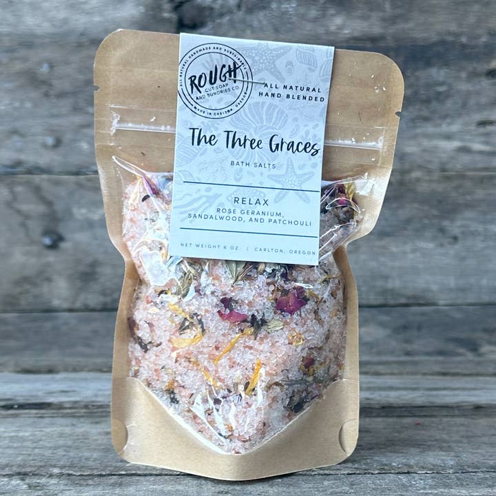 This bright sweet and soft feminine mixture is packed with citrus to keep you nice and fresh in the morning! Use Heceta Head bath salts for an all natural way to wake up! * Heceta Head formerly known as 'Sunrise'** Sea Salt, Pink Himalayan Salt, Grapefruit and Chamomile Essential Oils. Dried Rose, Heather, Calendula and Chamomile botanicals. Rough Cut Soap Co. takes a natural and sustainable approach to skincare, incorporating the highest quality of all-natural ingredients and essential oils, all while protecting our environment by guaranteeing items are Palm Oil free, and shipping does not include any plastic or harmful fillers. Shop our handcrafted, artisan products with confidence knowing each item is hand blended in small batches, and hand cut (or poured!) to not only ensure quality control, but for a beautiful, organic, and artistic finish.
