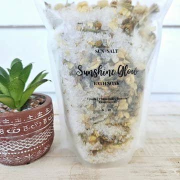 SKU: bathsaltsunrise-1 Made in United States Ingredient Preferences: Gluten-Free, Non-GMO, Paraben-Free, and Phthalate-Free Scent: Floral and Fruity Size: Standard Ingredients: Sea Salt, Pink Himalayan Salt, Grapefruit and Chamomile Essential Oils. Dried Rose, Heather, Calendula and Chamomile botanicals. Product Language: English Weight: 0.59 kg (1.3 lb) Product Materials: Plastic-free and Vegan Packaging: Recyclable Production: Cruelty-free and Ethically sourced