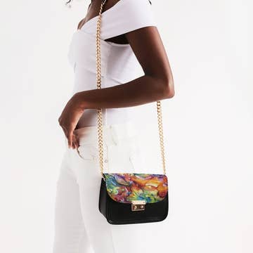 * Splatter Paint Faux Leather Crossbody Bag * 8W*6H*2.5D * Polyurethane, Mixed Metal.