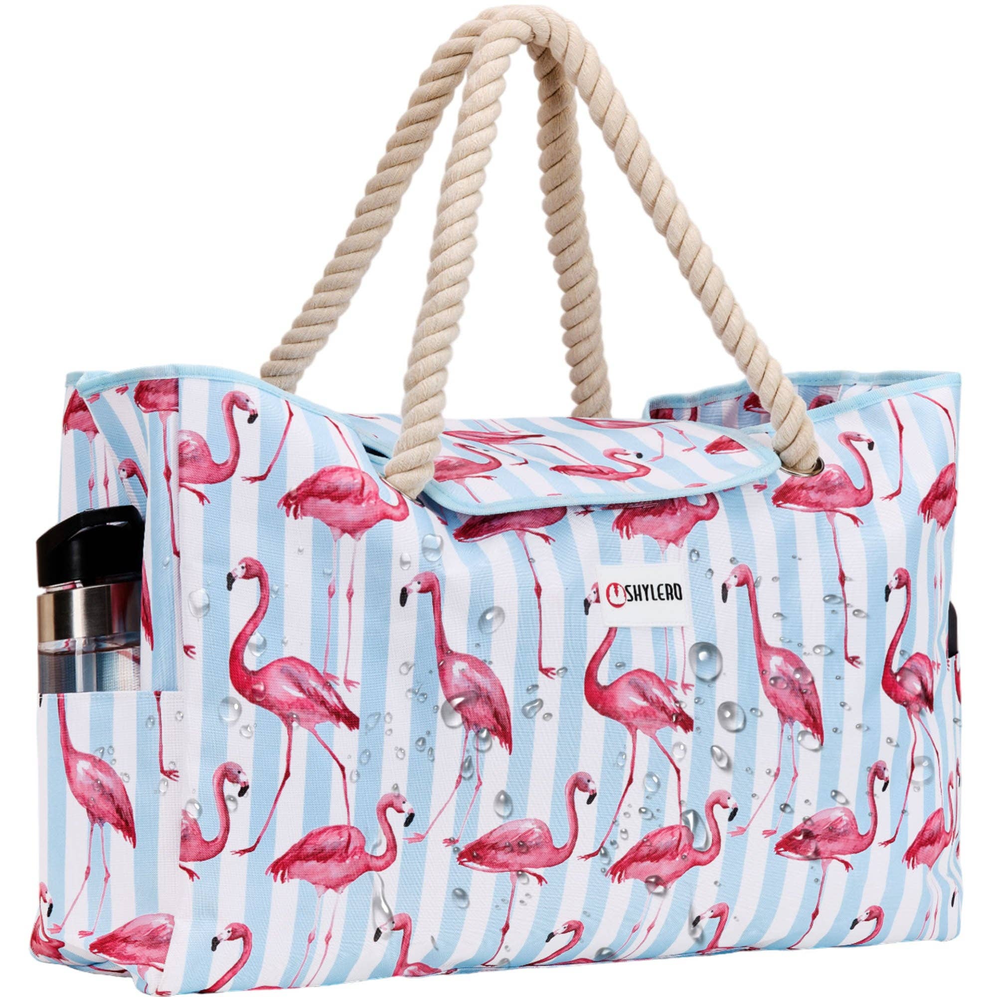 - WATERPROOF OUTER CANVAS-LIKE FABRIC with ripstop construction. It can hold 22 pounds (10 kg) easily - WATERPROOF INTERIOR LINING protects your items from getting wet or damaged - ROOMY CAPACITY - sized at L22"xH15"xW6" - THREE BIG INNER POCKETS (ONE IS ZIPPERED) securely stow away your lotions, magazines, other accessories - BONUS WATER/DUST/SAND PROOF PVC POUCH safely keeps your smartphone, credit cards, cash, jewelry, small valuables - BUILT-IN KEY HOLDER & BOTTLE OPENER - OUTSIDE POCKETS, HUGE INNER ZIPPERED POCKET - outside pockets for quick access to your water bottle, sunglasses, or snacks, Inner zip pocket for your wet stuff - STURDY, SOFT, COMFORTABLE ROPE HANDLES - PREMIUM YKK ZIPPERS - MACHINE WASHABLE - wash it on cold in a washing machine, then air dry - STYLISH & MULTIPURPOSE - with its classic nautical design, this really huge beach tote is perfect for beach family time, pool parties, picnics, and more! - BEST GIFT for any occasion!