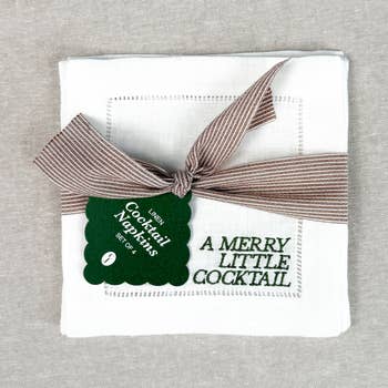 This beautiful set of four 100% European linen cocktail napkins will make your table look elegant and timeless. Each cocktail size napkin is embroidered with our signature "Natale Sprig" emblem and measures 6" x 6". Combine with the "Natale Collection" by Arte Italica as well as our Natale table runners, squares and napkins for the perfect look. Each set of four cocktail size napkins comes in a linen pouch for safe keeping, making it a great gift too.