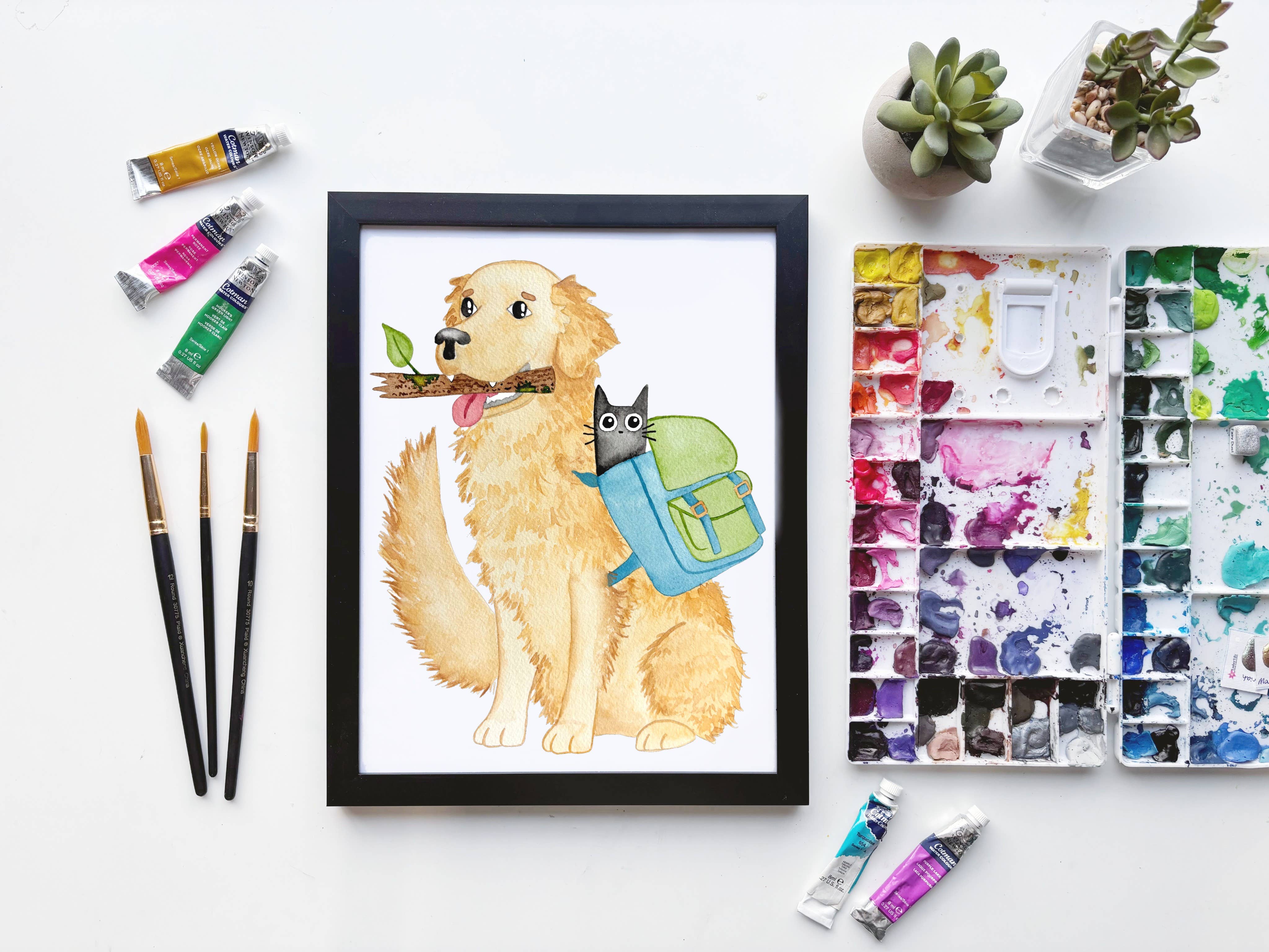 Adventure Awaits Print is a reproduction of my original watercolor and gouache painting; two foxes set out on an adventure and are admiring the views from the top of their hike, could be a great fit for many different types of occasions or wall decor for any nature or outdoors loving individual. Printed on Premium Presentation Matte Paper using high quality inkjet inks and signed on the front. Your print will be carefully packaged with an archival backing board in a protective cellophane cover, then wrapped in bubble wrap all inside a rigid mailer to ensure it's protected during shipping. Wooden frame not included. All of my prints are currently available in either 8”x10” or 11”x14” - please choose your desired size. I attempt to ship out all orders as quickly as possible, but ensure that everything is shipped within a maximum of three business days. Thank you for shopping at Little Pine Artistry!