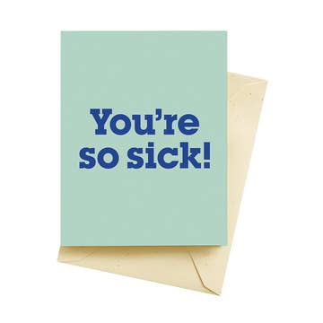Yes Mr. Skunk, being sick stinks. Flat printed on FSC certified paper from an original hand-cut collage, drawing, or print. 4.25" x 5.5" folded card with recycled kraft envelope. Blank inside Made in USA