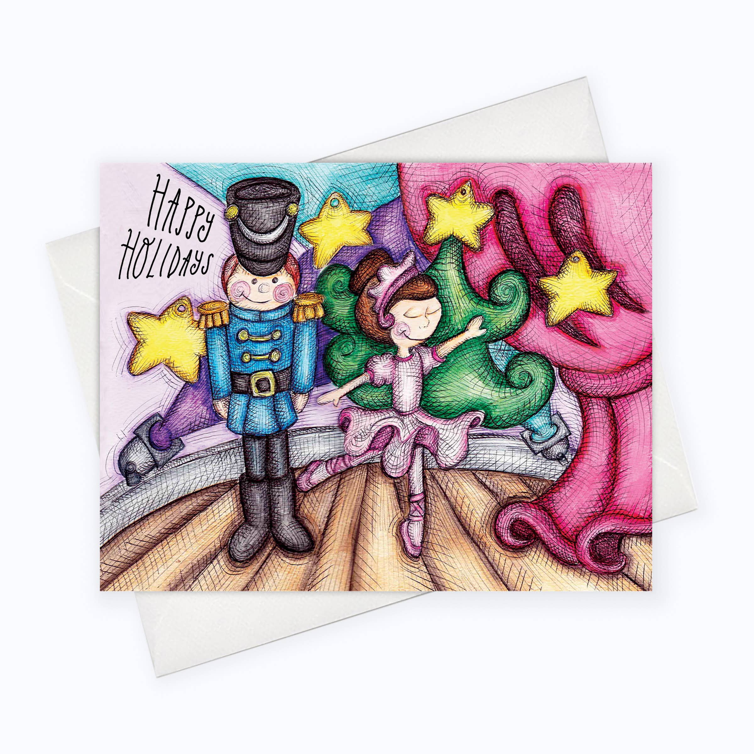 Pet Lovers Holiday Card | Pet lovers Christmas Card | Going to the North Pawl - Printed on 110 lbs. paper (card stock). - Blank card. - 4.25 X 5.5" (A2 size) - Alternatively, we also offer 5 X 7" size (A7 size). - Comes with a matching envelope inside an individual plastic sleeve / resealable cello bag. - Created from the original drawing using watercolor, watercolor pencils and ink and printed on card stock. - For customization please contact us. - Pet lovers Holiday Card.