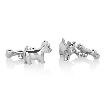 Look charming yet formal. These twin Dachshund Cufflinks will bring smile to pretty much everyone you see at work. Material: Silver plated. Enamel coated. Measurements: W 0.75in.