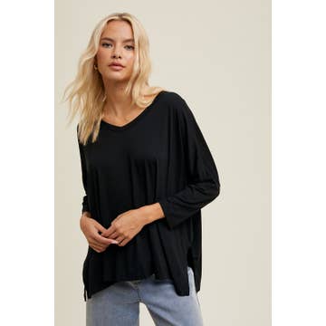 BAMBOO OVERSIZED DROP SHOULDER KNIT TOP - SIDE SLITS, RELAXED, CASUAL - GREAT BASIC WEAR, EASY OUTFIT 72% BAMBOO, 23% POLYESTER, 5% SPANDEX * Due to lighting and differences in monitors, actual colors may vary slightly from what appears online.