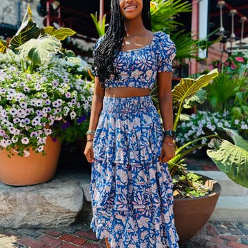 Breezy Elegance Smocked Top and Flowing Skirt Set