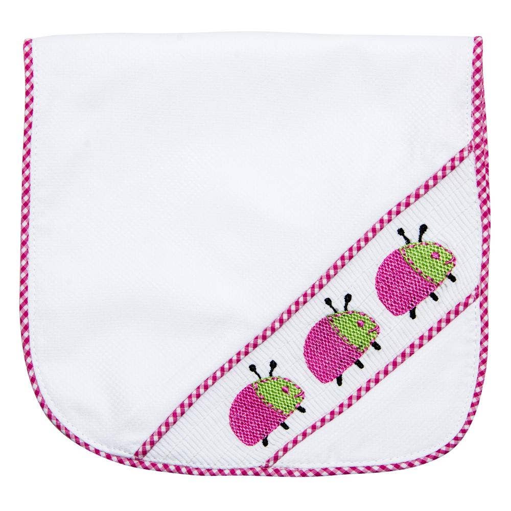 Let's make bath time a fun time! Our cute Hooded Towel features colorful trim that is matching with the style of the icon placed on the hood. It comes rolled up and tied in a bow, perfect for gifting! Add a coordinating bib and burp cloth to create a whole set of fun gifts for both mom and baby! * Terry cloth, Cotton * 31" x 31"