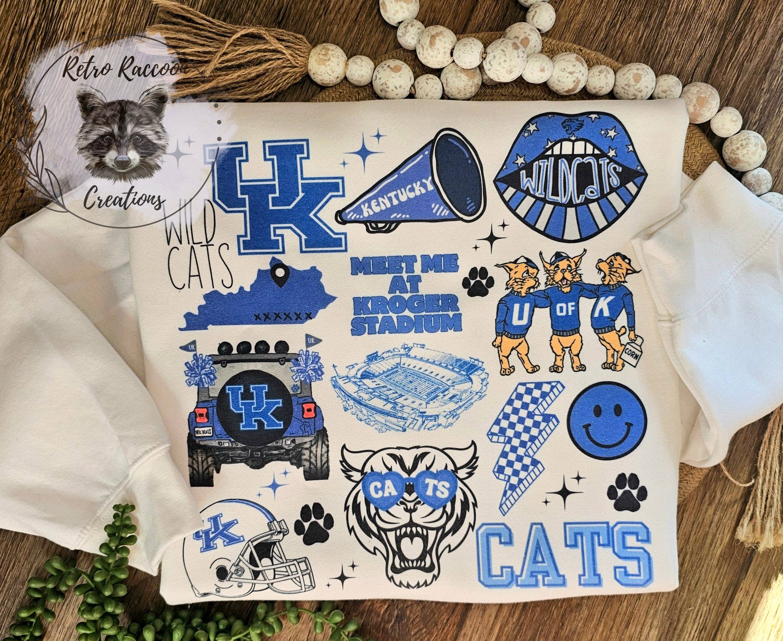 Your Kentucky fans are sure to love this sweatshirt! This is the same print as the other one I have posted, but with images on the sleeves! How cute!! Brand: Jerzee Color: Ash Sublimation print Unisex, fits true to size. **Please be aware that all screen colors can vary meaning the color can slightly vary from in life versus pictures. I don't edit or change any of my pictures. They are taken in natural lighting to best show true colors.