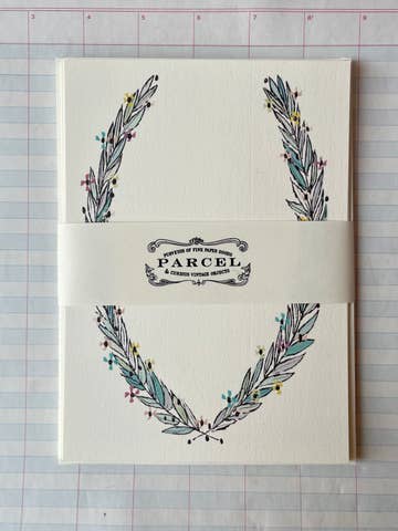 Handmade paper, A2 envelopes included. 5 different designs, 10-pieces total, pre-creased. Made in independent studio in Missouri.