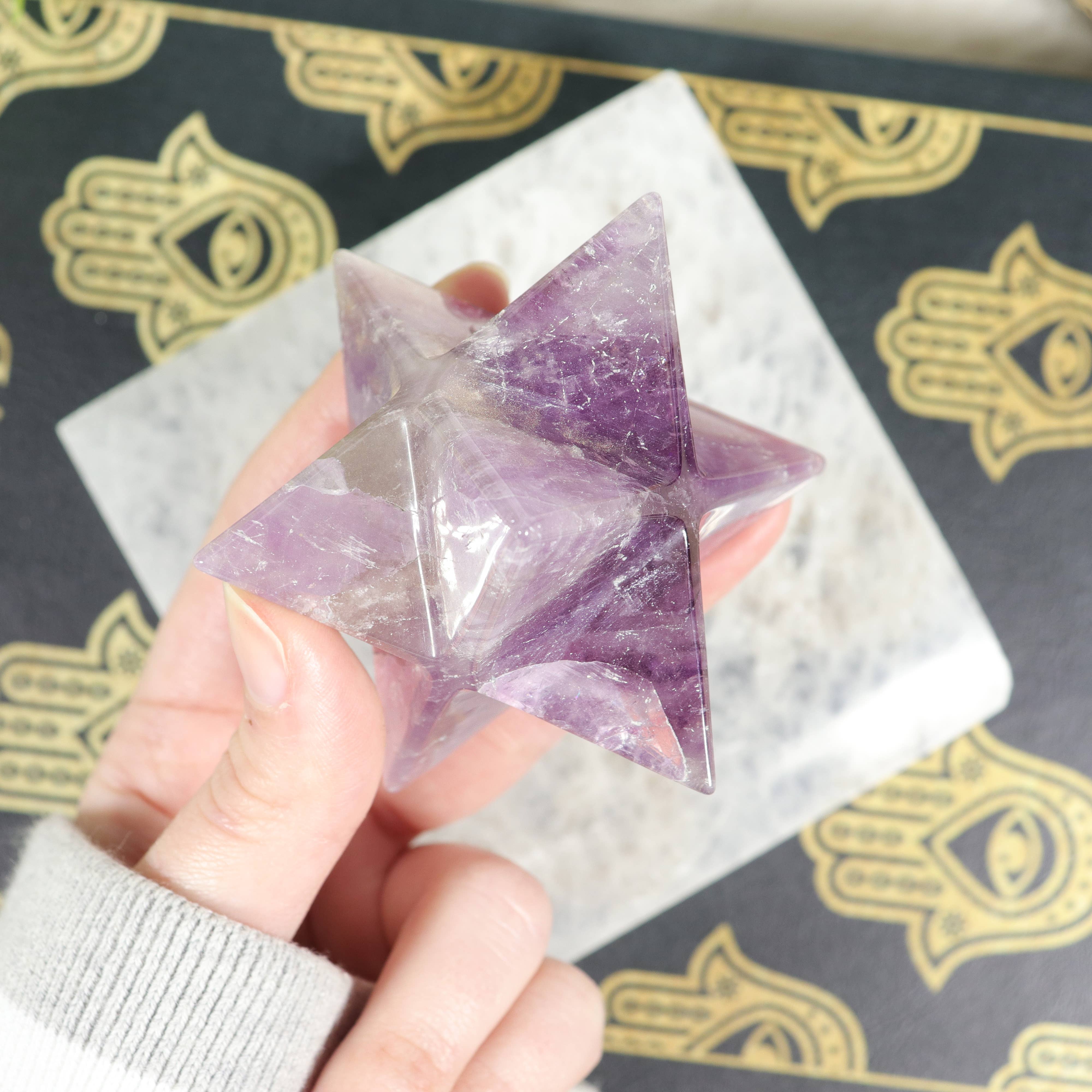 This Gemstone Merkaba Star Sacred Geometry Crystal measures approximately 1/2 inch and is crafted with precision to represent the powerful energy of sacred geometry. The Merkaba star, known as a symbol of balance and spiritual connection, is ideal for meditation, energy work, and metaphysical practices. Perfect for crystal retailers, metaphysical shops, new age stores, and gift shops, these small yet powerful sacred geometry carvings are popular wholesale items. Whether displayed as part of a crystal collection, used in grids, or offered as a meaningful gift, these wholesale gemstone Merkaba stars are versatile and in demand among customers seeking spiritual and energetic tools. Sold individually with a minimum of 4 per style.