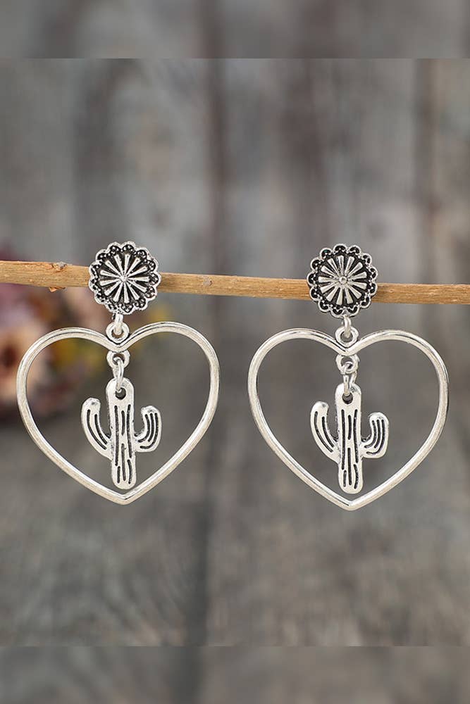 Stunning western stone with beautiful cactus cutout design dangle drop earring *Metal/Synthetic Stone *Nickel/Lead Compliant *APPROX. L 2" W 0.75" 0.83oz *Imported