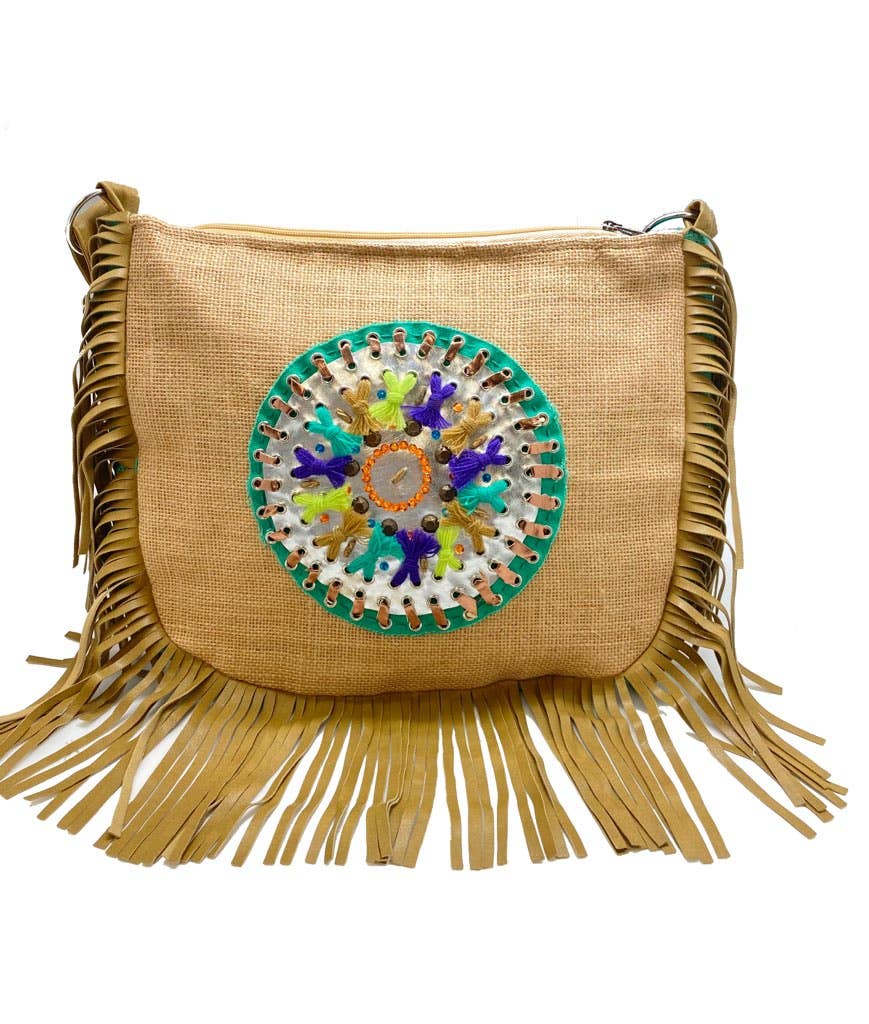 Vegan Chic Suede Fringe Embroidered Small Dreamcatcher Bag