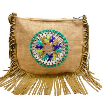 Embrace your bohemian spirit with the "Vegan Chic Suede Fringe Embroidered Small Dreamcatcher Bag"! Handcrafted in Nepal, this bag is a symbol of free-spirited style and ethical fashion. The soft suede material and playful fringe give it a whimsical touch, while the intricate embroidery featuring a dreamcatcher adds a touch of mysticism. Carry your essentials with a sense of purpose and positive energy, knowing that this bag is not only stylish but also made with love and care. Let the dreamcatcher symbol protect your dreams and aspirations as you wander through life's adventures.