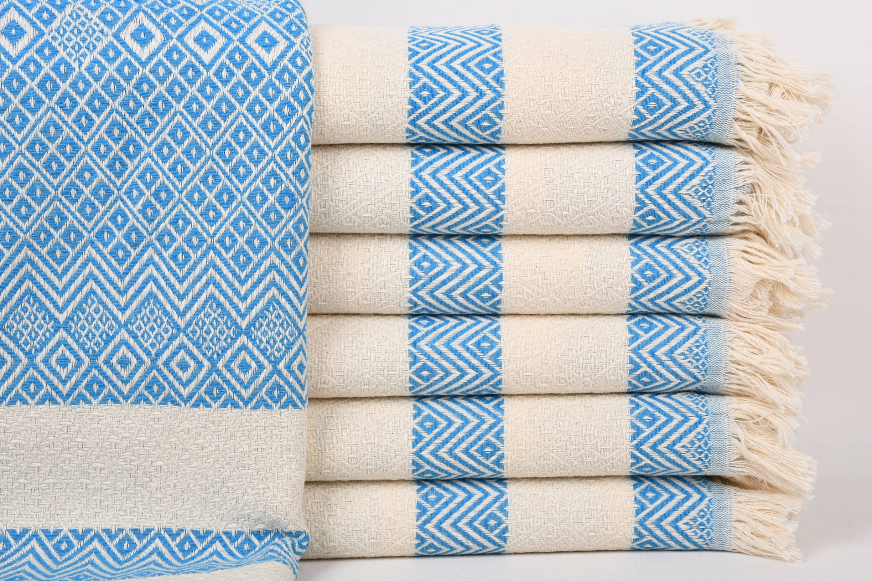 STOCK DEAL - 10 MIX COLORS Cotton Turkish Beach Towels! Please take a look at the photos for type of styles that will be in your mix. **CONTACT FOR LOGO, DIFFERENT COLOR PICKS AND PLACEMENT FOR CUSTOMIZATION. AT NO REQUEST ALL CUSTOMS WILL BE STANDART SIZE 1,5"-2" H to 8-10 Inches long depending on font size. Name - Font Style - Font Color Ex: Samuel - Black - Style 4 ** CUSTOM ITEMS ARE NOT RETURNABLE - WE CAN MATCH FONT COLOR WITH ITEMS 100% Turkish Cotton 39x64" Inches can be used as wedding favors Beach, Spa, Swim, Pool Towels, Shawl, or blanket This MultiPurpose Towels are designed to be loose loomed to add character to it. It is both sided . Add visual interest to your design scheme with jacquard towels. Featuring patterns woven into the fabric rather than printed on top, the textiles add a luxurious touch to the en suite.For an unexpected element, find a towel with the reverse color pattern on its opposite side to mix up your look in an instant.