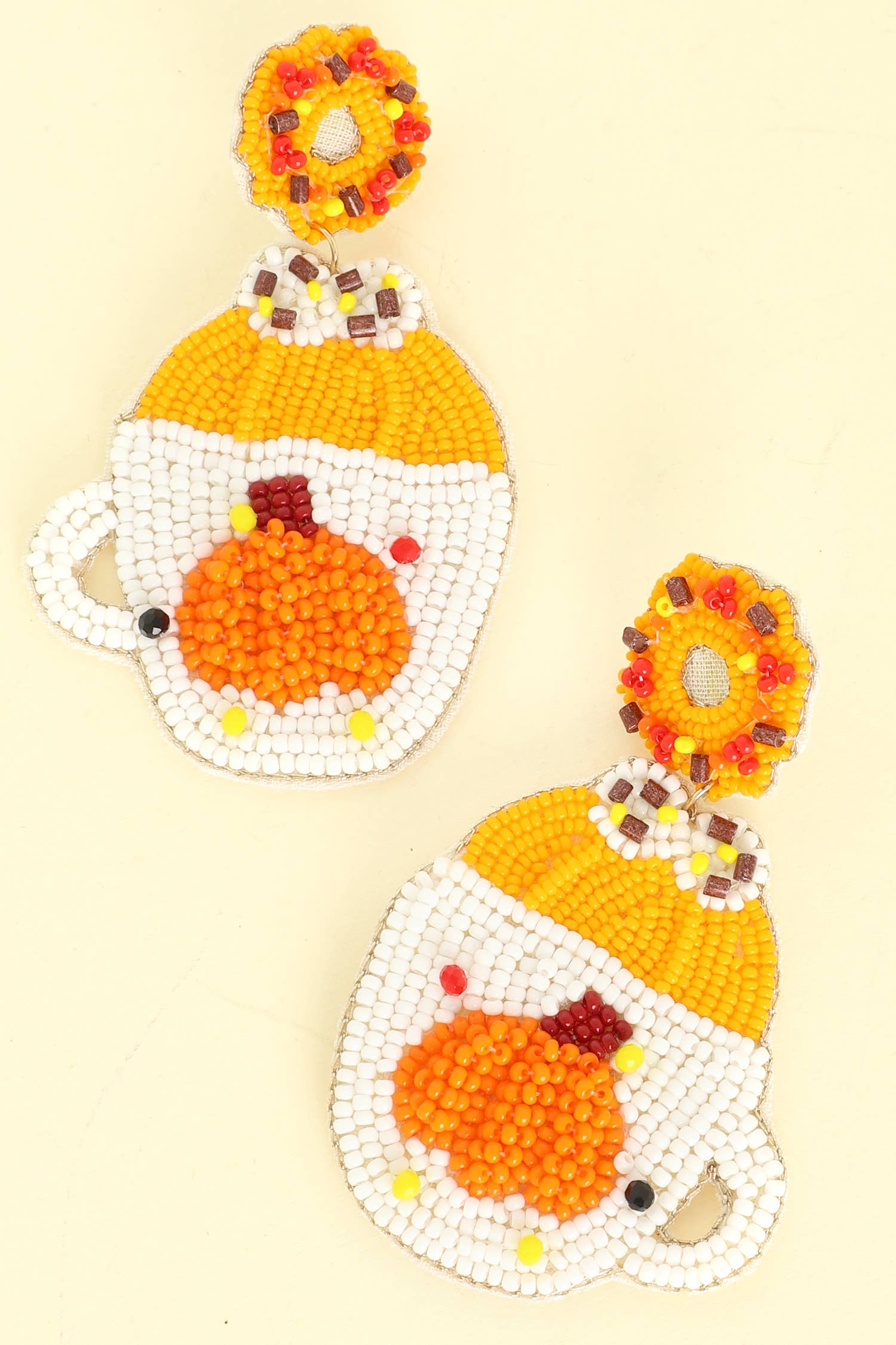 HANDMADE SEEDBEAD CARROT CAKE EARRING - 1 5/8 X 2 INCHES