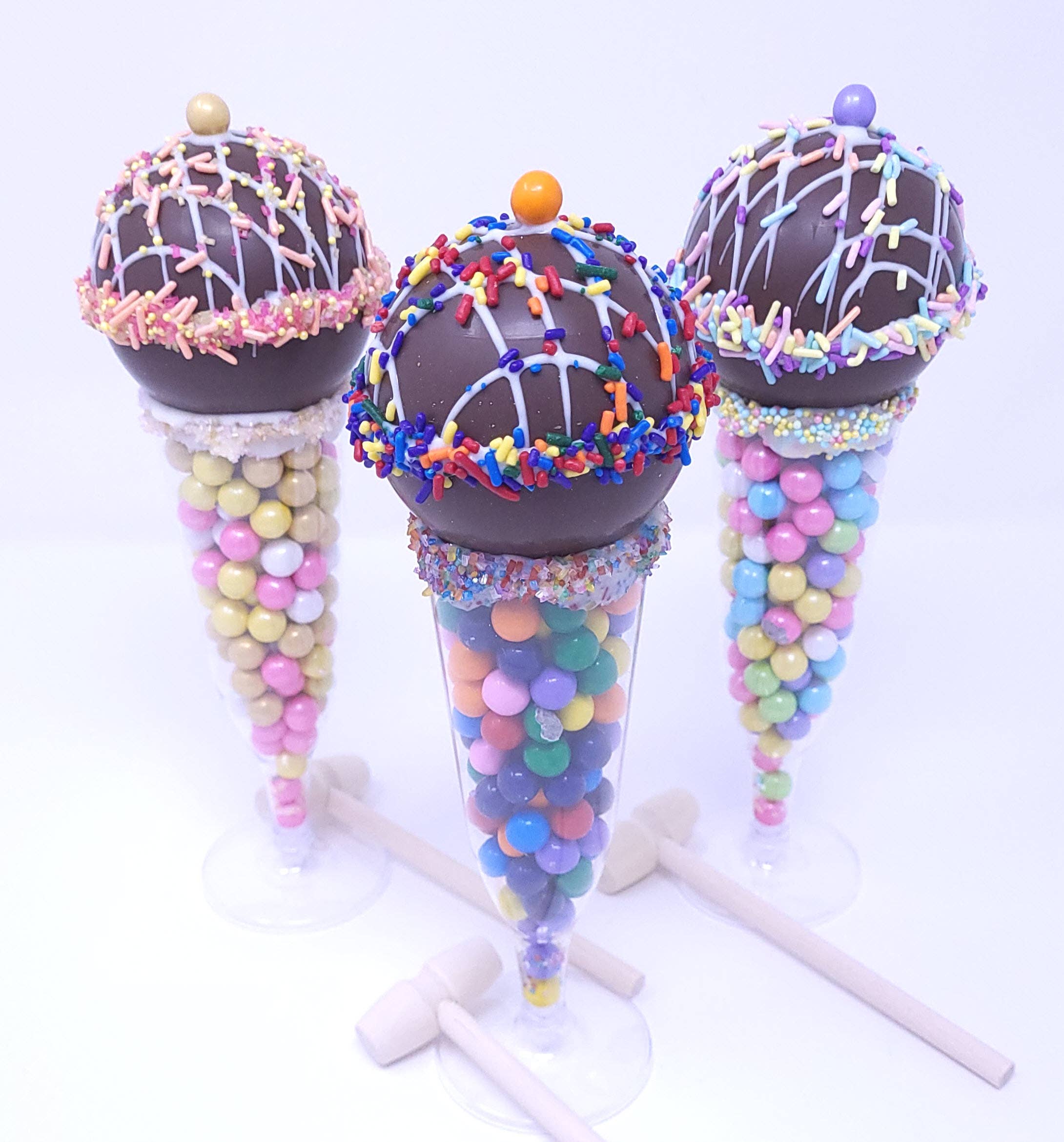 This large candy kabob features a wide range of gummy types with your choice of topper! Specific candy types may vary depending on availability but will be similar. Topper options: 1) no topper - more candy! 2) marshmallow with white chocolate drizzle, sprinkles, and chocolate ball 3) rainbow swirl lollipop -11" skewer -approx 8 inches of candy -weight: approx 3.75 oz (106g) -individually wrapped -optional curly ribbon Shelf life: 6-12 months at cool room temperature, shelf-stable