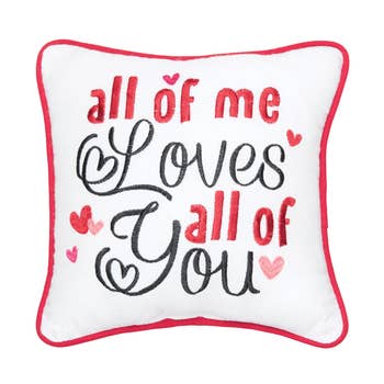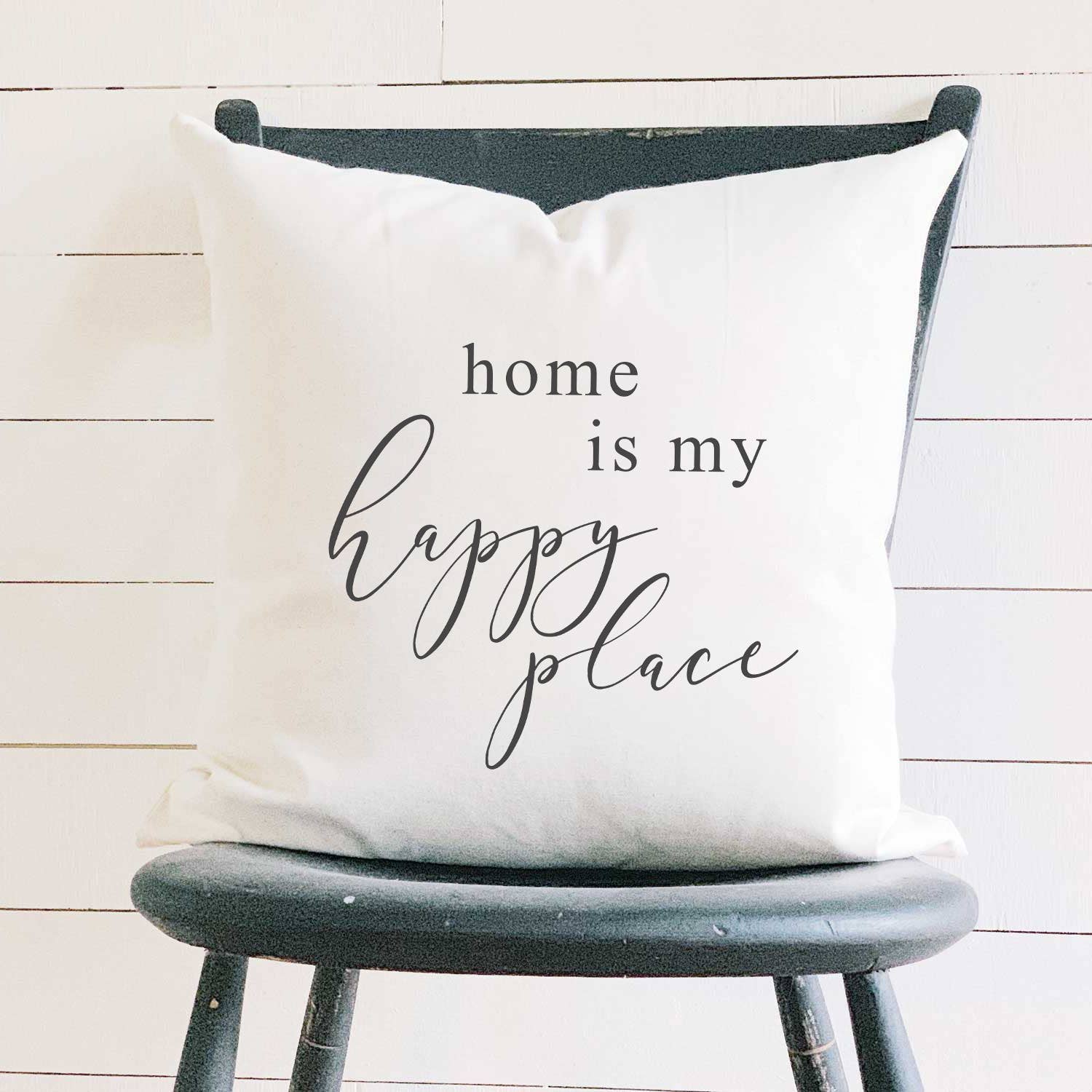 You Are My Home Pillow is a decorative accent pillow that features the phrase, "You Are My Home," on a neutral, cream colored fabric. Design is accented with black striping details on each side. Measures 10" square.