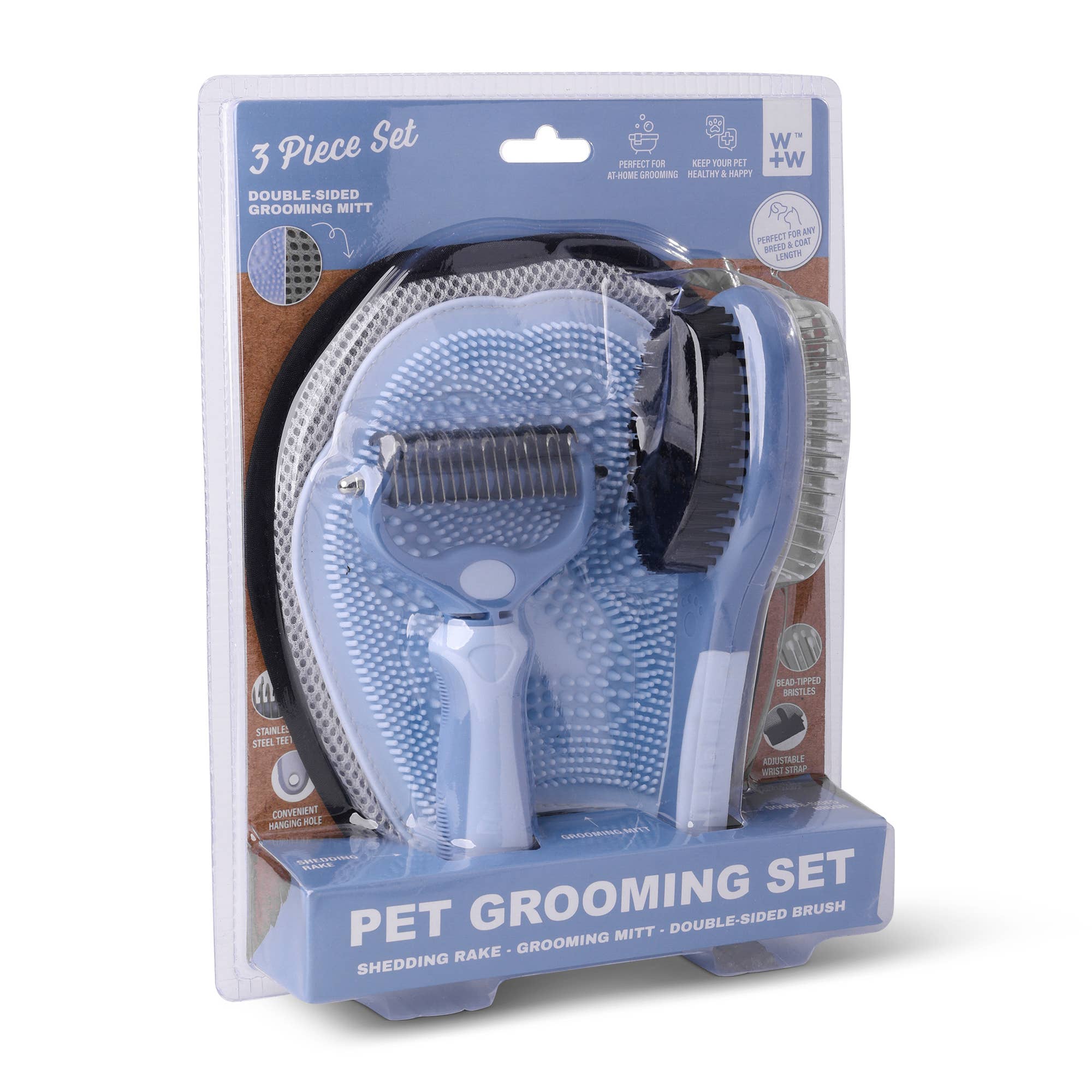 We're so happy to find a great quality grooming tool that also supports Brick & Mortar! This cool tool is a combo. product- the 9 blades are for de-matting and de-tangling and the 17 blades on the other side are for gently removing the fuzzy undercoat! We know these will do well in our shop especially when they use them in the bath first hand!
